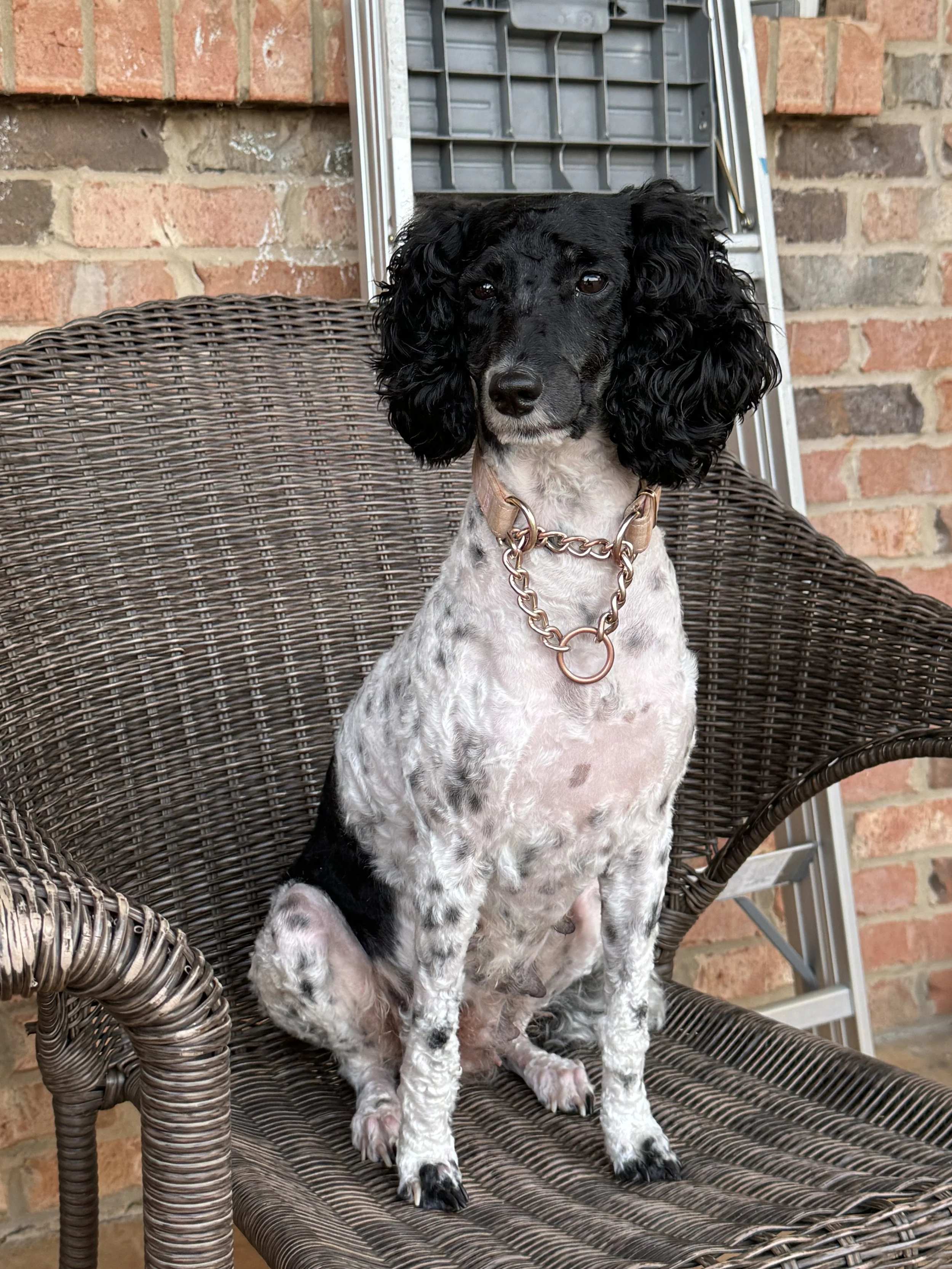 Roxie is an AKC registered brindle abstract mini poodle, DOB Mar 2024. She is 11”, 10 pounds. Pedigree