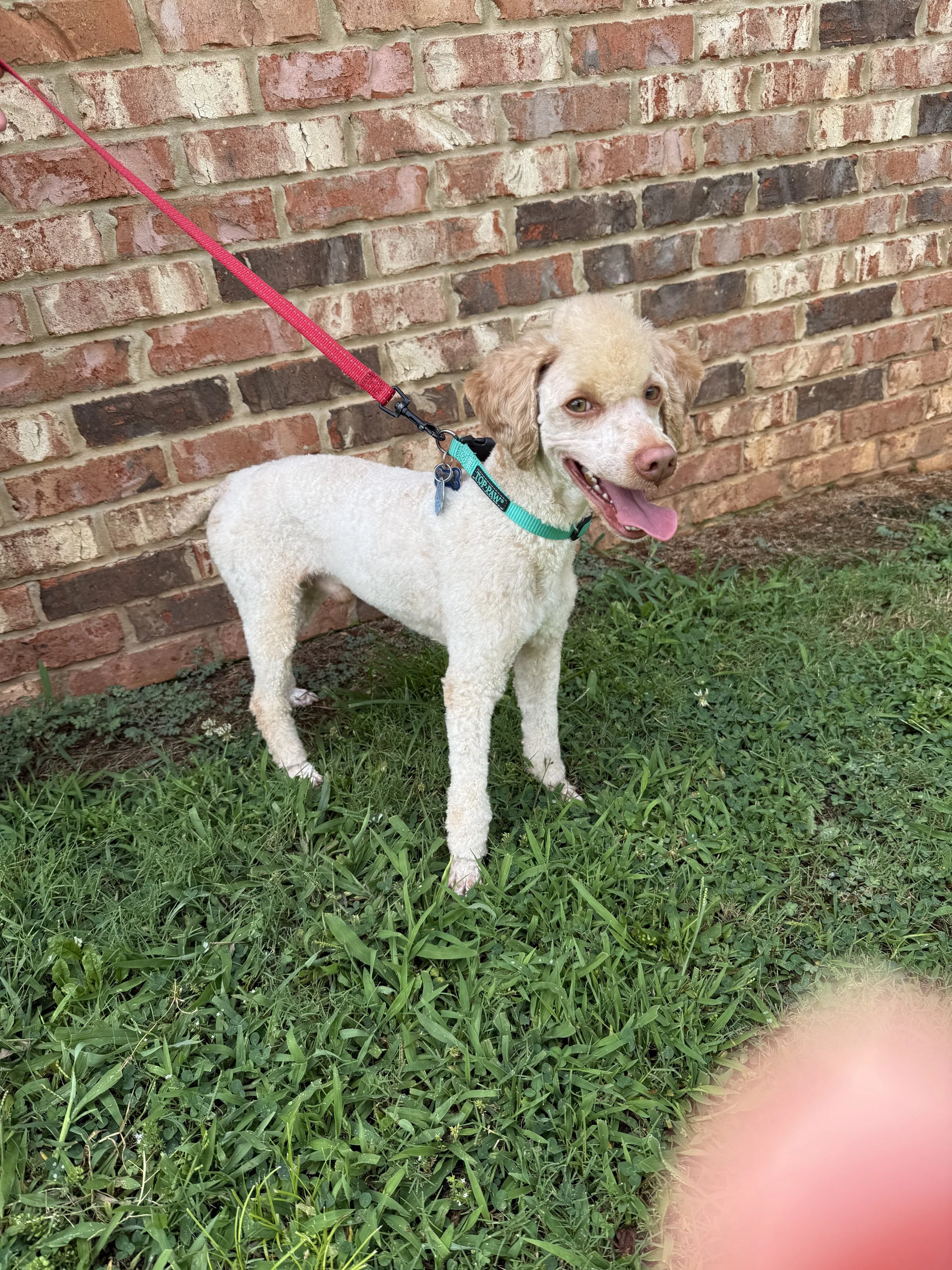 Fozzy is a 2 year old AKC registered brown base apricot abstract mini poodle. He is a low energy, low drive, love bug. Current height/weight: 13 inches, 13 pounds. He is available to a Guardian home. AKC registration #PR26141502. Pedigree